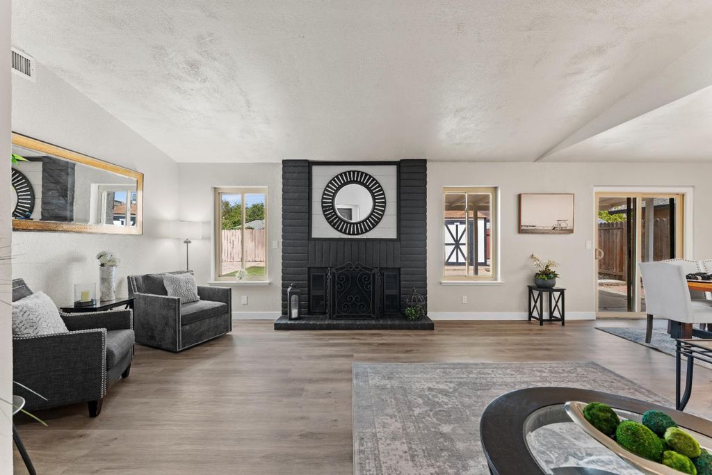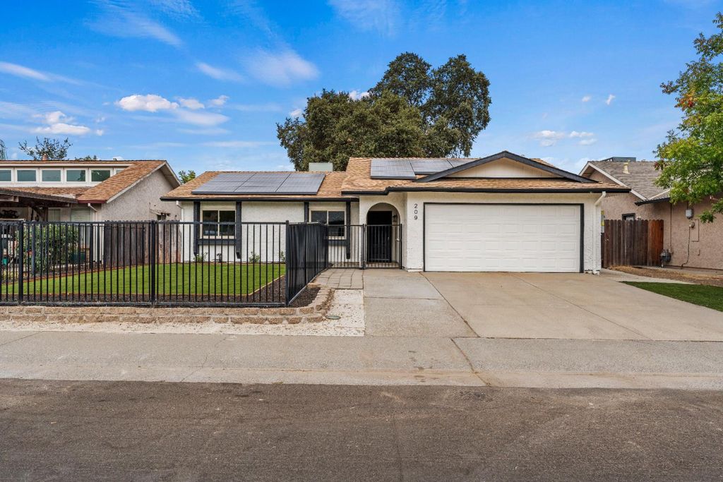 Welcome to 209 Jubilee Way! This beautifully remodeled 3 bedroom, 2 bathroom home has been thoughtfully updated with modern comfort and style. The spacious great room showcases a vaulted ceiling and a beautiful wood-burning fireplace, while the beautifully updated kitchen and bathrooms feature quartz countertops, stylish finishes, and new appliances. Throughout the home you'll find new luxury vinyl plank flooring, new light fixtures, and upgraded plumbing. Two bedrooms feature 8-foot mirrored closet doors, and one offers a custom built-in closet. Additional energy efficient features include a 9.72 KW owned solar, recently updated roof, HVAC, tankless water heater, and dual pane windows and doors. The extra-deep 2-car garage comes with garage door opener and new garage door tracks. Both the front and backyard have been newly landscaped with water-saving artificial turf, custom stamped concrete, and a high-end ornamental iron fence in the front yard. Ideally located in a desirable Rio Linda neighborhood, this move-in ready home is truly a must-see!