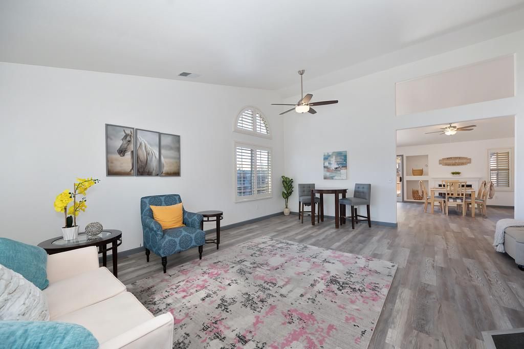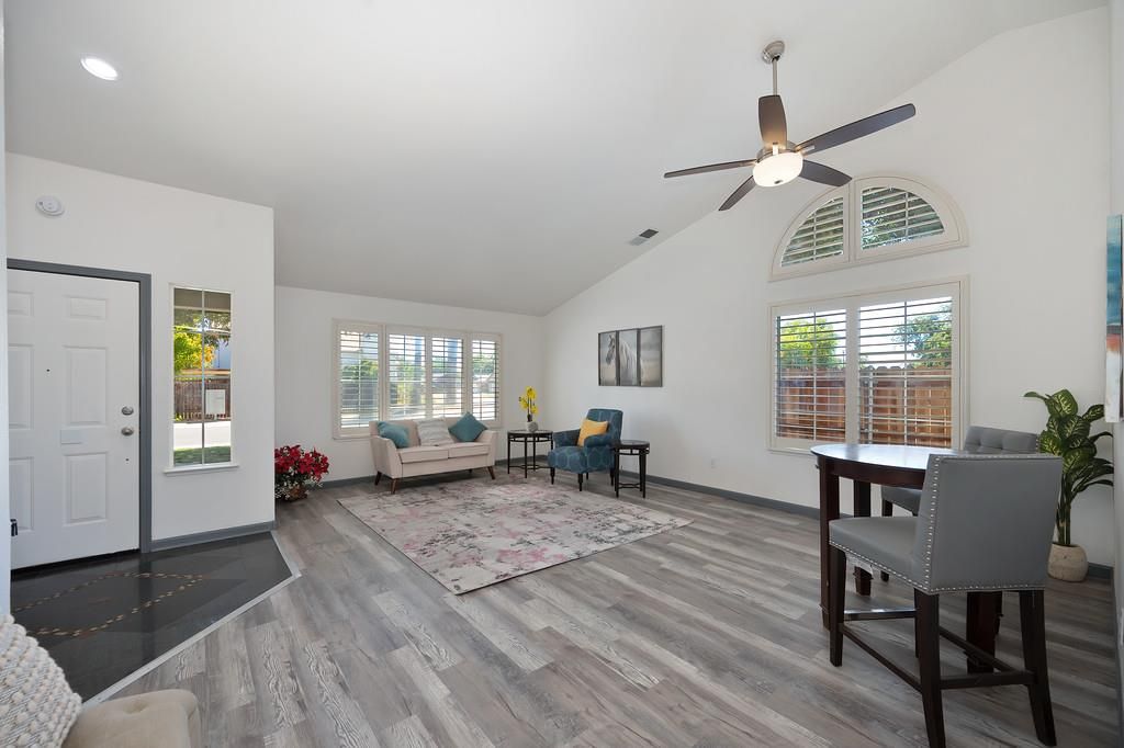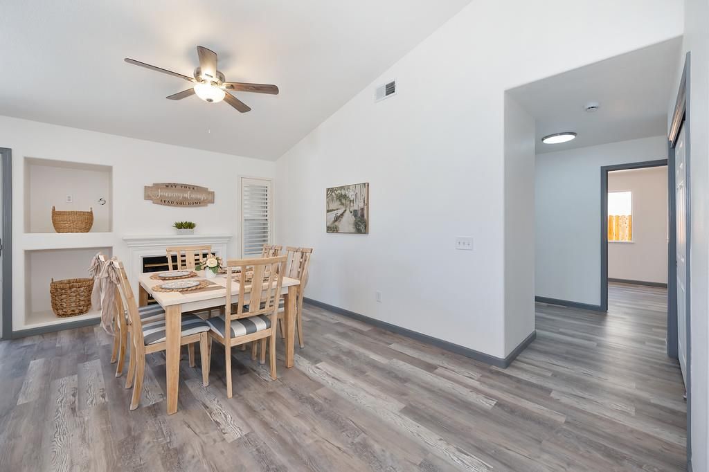 This single-story charmer offers the perfect blend of comfort and functionality. Step inside to a light-filled layout where the cozy living room, anchored by a welcoming fireplace, flows seamlessly into the dining area perfect for gatherings or quiet nights in. Elegant plantation shutters add warmth and style, while the kitchen provides ample counter space and storage to keep everything within easy reach. Enjoy year-round comfort with central heating, cooling, and ceiling fans throughout. Outside, a spacious backyard is ready for barbecues, gardening, or relaxing under the open sky, complete with a 12x14 shed featuring a brand-new roof for extra storage or hobbies. An attached two-car garage adds convenience, and the friendly neighborhood offers a true sense of community. Close to parks, schools, and local amenities, this home is a welcoming retreat ready for its next chapter.